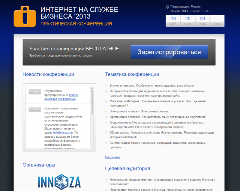 Сайт конференции "Интернет на службе бизнеса 2013"http://i2b.innoza.ru