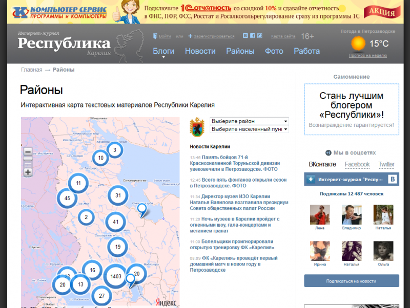 Раздел "Районы" на сайте Интернет-журнала "Карелия"http://rk.karelia.ru/rajony/